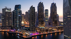 Thanks to its proximity to major sights and attractions such as JBR Beach, Bluewaters Island, Palm Jumeirah, Dubai Marina Mall and Dubai Mall, Dubai Marina is one of the city’s most popular areas for visitors and residents alike. Dubai International Airport is a 30-minute drive away while the souks of Deira are 15 minutes by car.