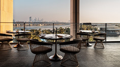 Perfectly suited to celebratory dinners and special occasions, Dinner by Heston Blumenthal feels sophisticated yet inviting and cozy with warm browns, polished black accents, elegant booths and a private dining room. Inside, chefs are at work in the show kitchen, while floor-to-ceiling windows offer views of Palm Jumeirah and the resort’s iconic Skyblaze fire and water fountain show.